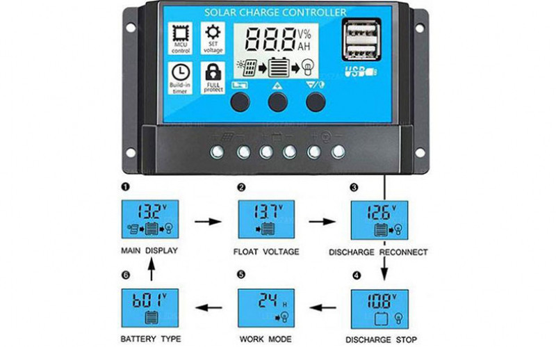 Ismered a környezetbarát technológiát!  Ez a kompakt szett megoldás a problémádra, ugyanis képes vezérelni a napelem töltését. Nagyon praktikus készülék, ami automatikusan felismeri a feszültséget 10A-ig. LCD-kijelzőjéről minden szükséges információ leolvasható. Véd a túltöltéstől és mélykisütéstől is, így a napelem működtetése mindig zavartalan lehet!