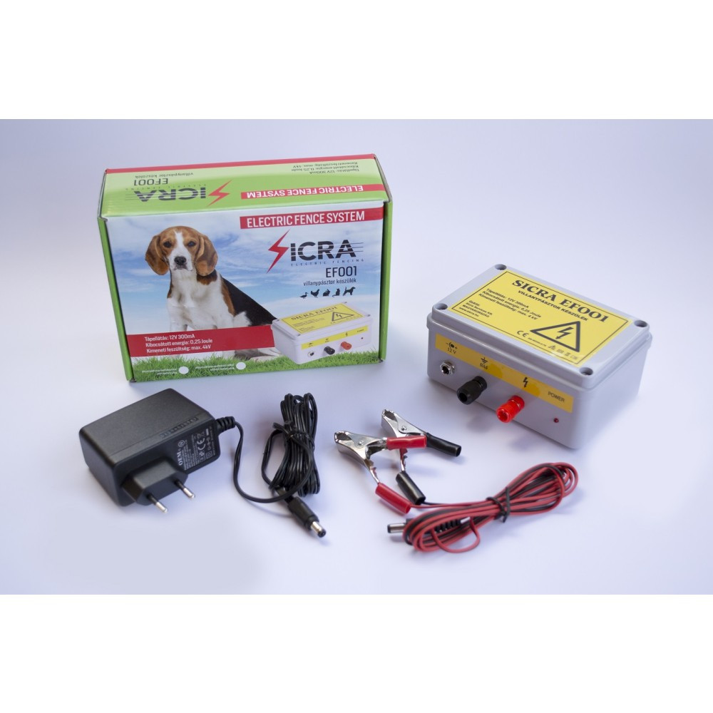 A Sicra EF002 villanypásztor a legnépszerűbb modell, amely 1 Joule teljesítményével már közepes vagy nagyobb testű kutyák esetén is hatékony. Kiváló választás kertek, veteményesek vagy hosszabb kerítések védelmére.